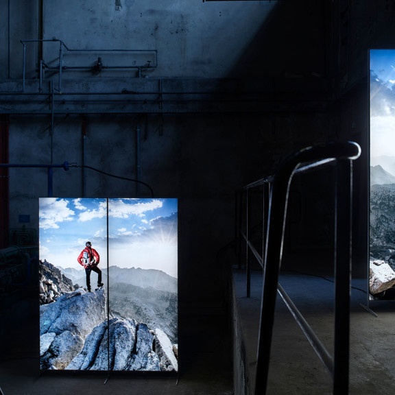 Mit einer Bautiefe von nur 4 cm ist das innovative Leuchtdisplay nicht nur leicht und somit gut transportierbar, sondern lässt sich fast überall ohne Werkzeug und ohne Mühe aufbauen. Auf das klappbare und stabile Rahmensystem lassen sich die Textilfronten mit wenigen Handgriffen austauschen.